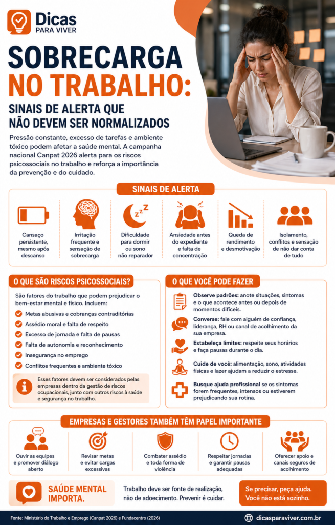 O ponto principal é não esperar chegar ao limite. Se o trabalho está afetando sua saúde de forma constante, isso precisa ser observado, conversado e cuidado.
